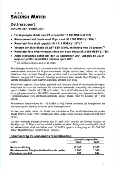 Delårsrapporter 2001